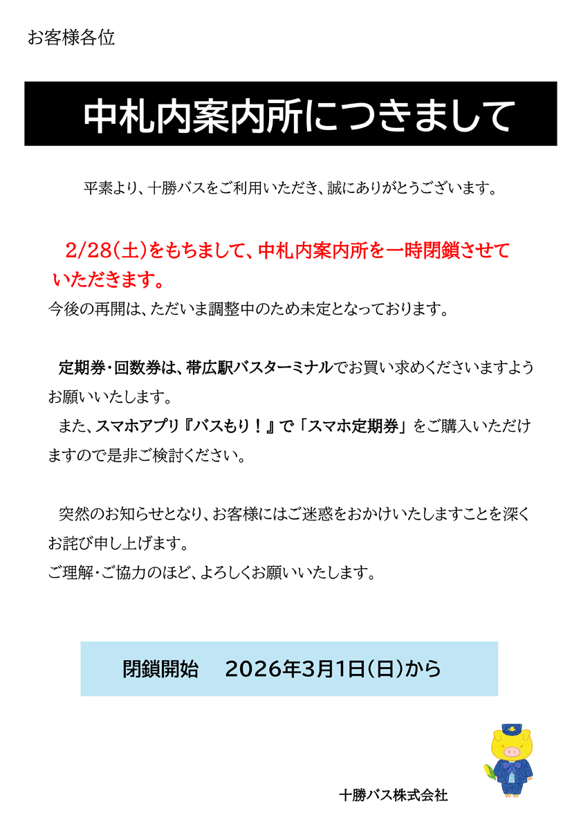 中札内案内所一時閉鎖について